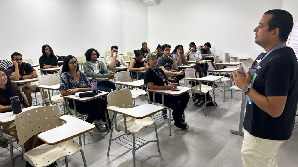 Estudantes do 2º ao 5º período dos cursos de Análise e Desenvolvimento de Sistemas (ADS) e de Ciência da Computação do Centro Universitário Tiradentes – UNIT receberam uma visita do coordenador da Residência nas empresas do Porto Digital, Victor Sotero. O encontro aconteceu no dia 25 de fevereiro e marcou o início do processo da Residência Tecnológica 2026.1, representando mais um passo estratégico na formação prática e inovadora dos futuros profissionais de tecnologia.